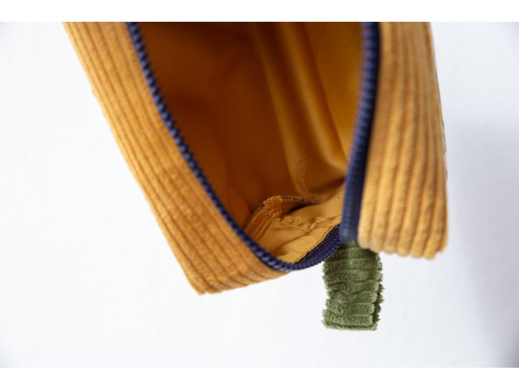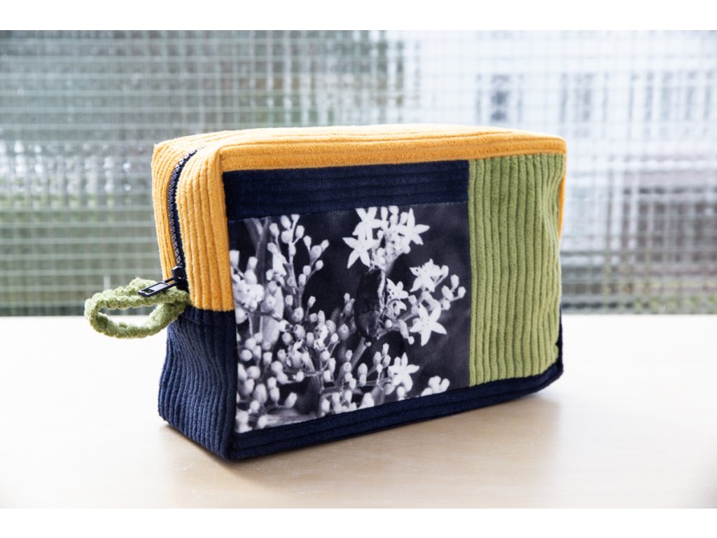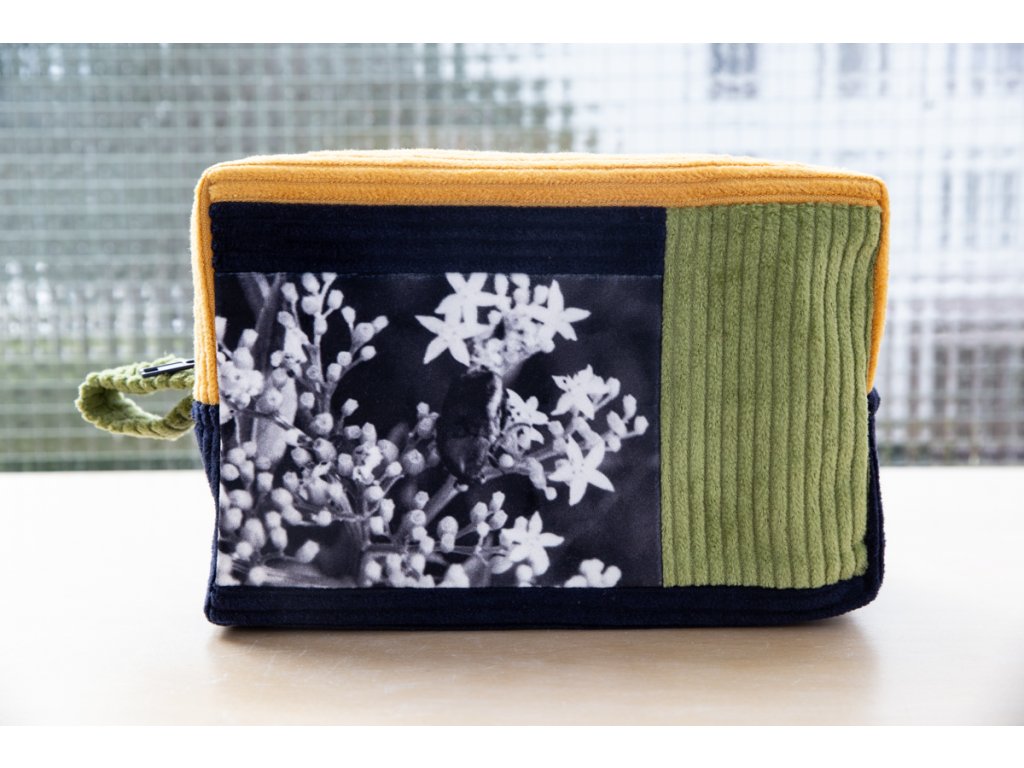 Je ručně šitá z kvalitního manšestru s plyšovou černobílou fotografií a s lesklým saténovým vnitřkem. Jedna velká kapsa se zipem se postará o přehlednost a rychlý přístup ke všem vašim věcem.