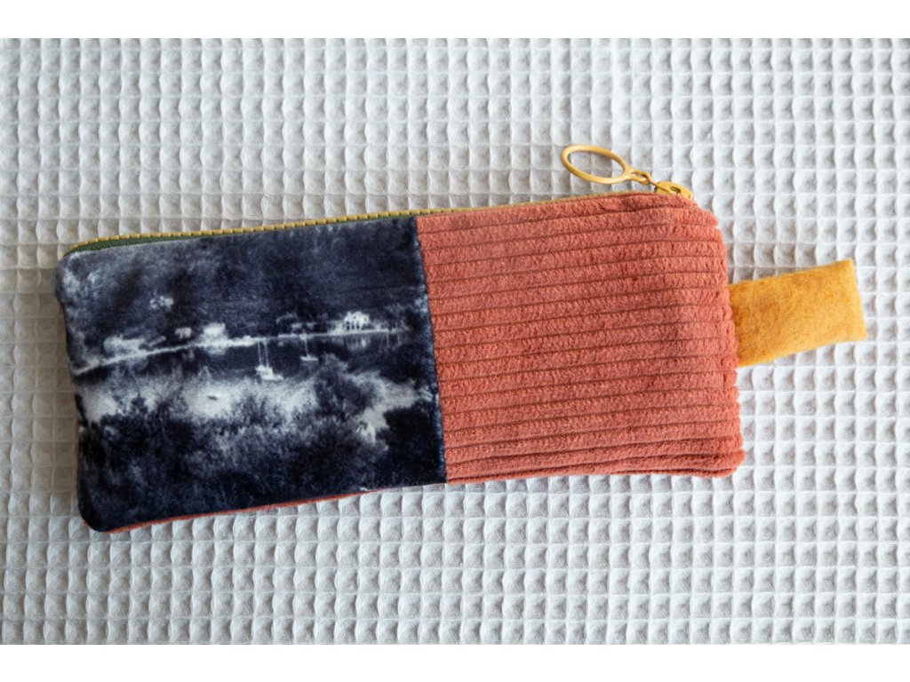 Ledvinka má jednu základní kapsu zavíratelnou na zip. Je ušita z vnější strany z manšestru a plyšové látky s potiskem autorské fotografie a uvnitř se skrývá bavlněná látka s pevnou keprovou vazbou. Bavlněný popruh o šířce 3cm je nastavitelný a doplněný o kovové prvky s karabinou.