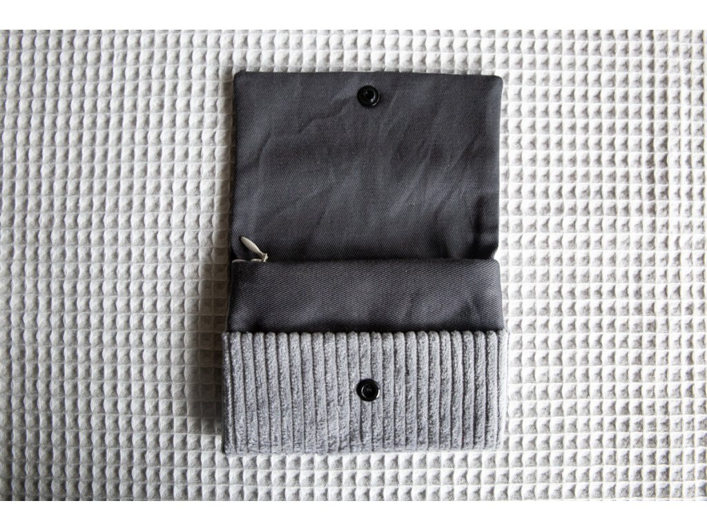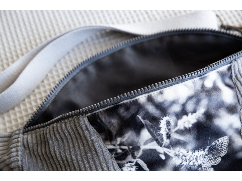 Ledvinka má jednu základní kapsu zavíratelnou na zip. Je ušita z vnější strany z manšestru a plyšové látky s potiskem autorské fotografie a uvnitř se skrývá bavlněná látka s pevnou keprovou vazbou. Bavlněný popruh o šířce 3cm je nastavitelný a doplněný o kovové prvky s karabinou.