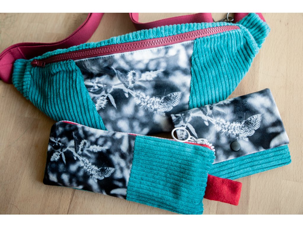 Sladěná sada, která má všechno – ledvinku, peněženku i penál ve stejné barevné kombinaci.