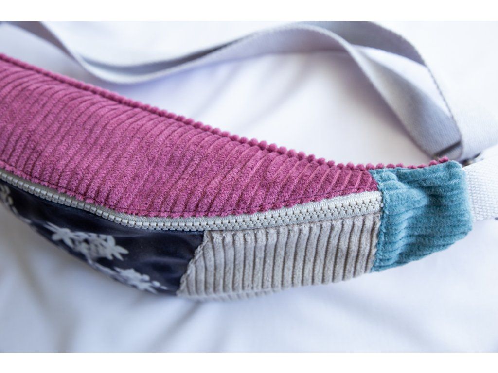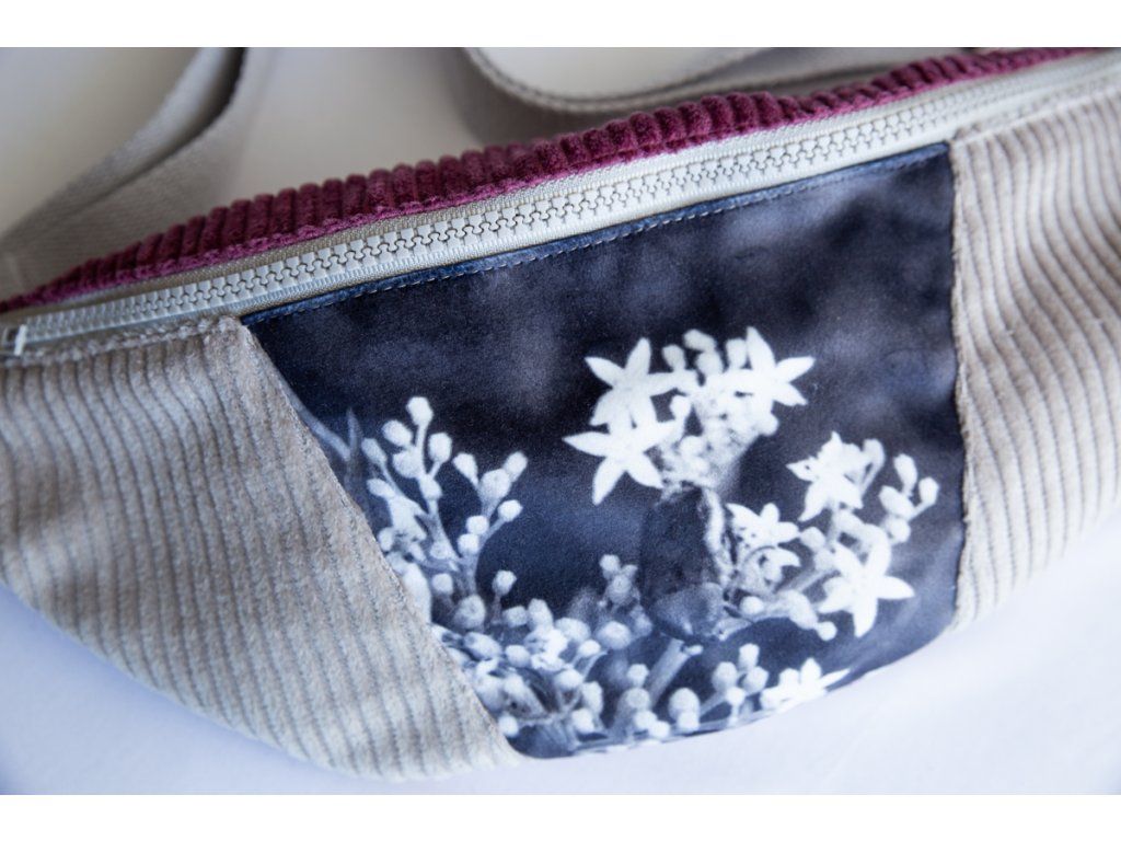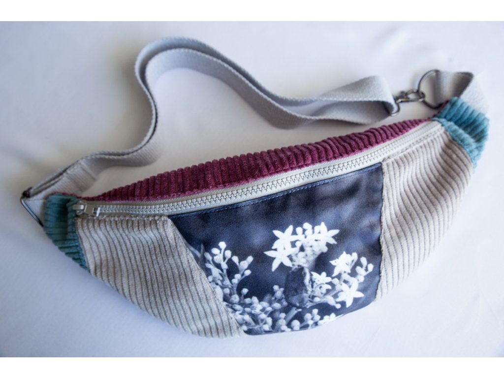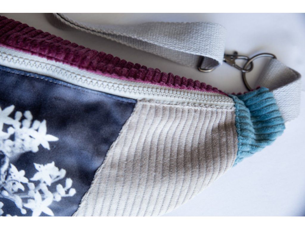 Crossbody ledvinka z manšestru s autorskou fotografií na plyši. Ruce máš volné, všechno důležité na dosah.