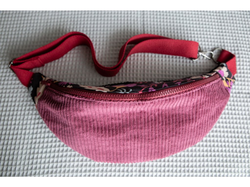Crossbody ledvinka z barevného manšestru. Ruce máš volné, všechno důležité na dosah.