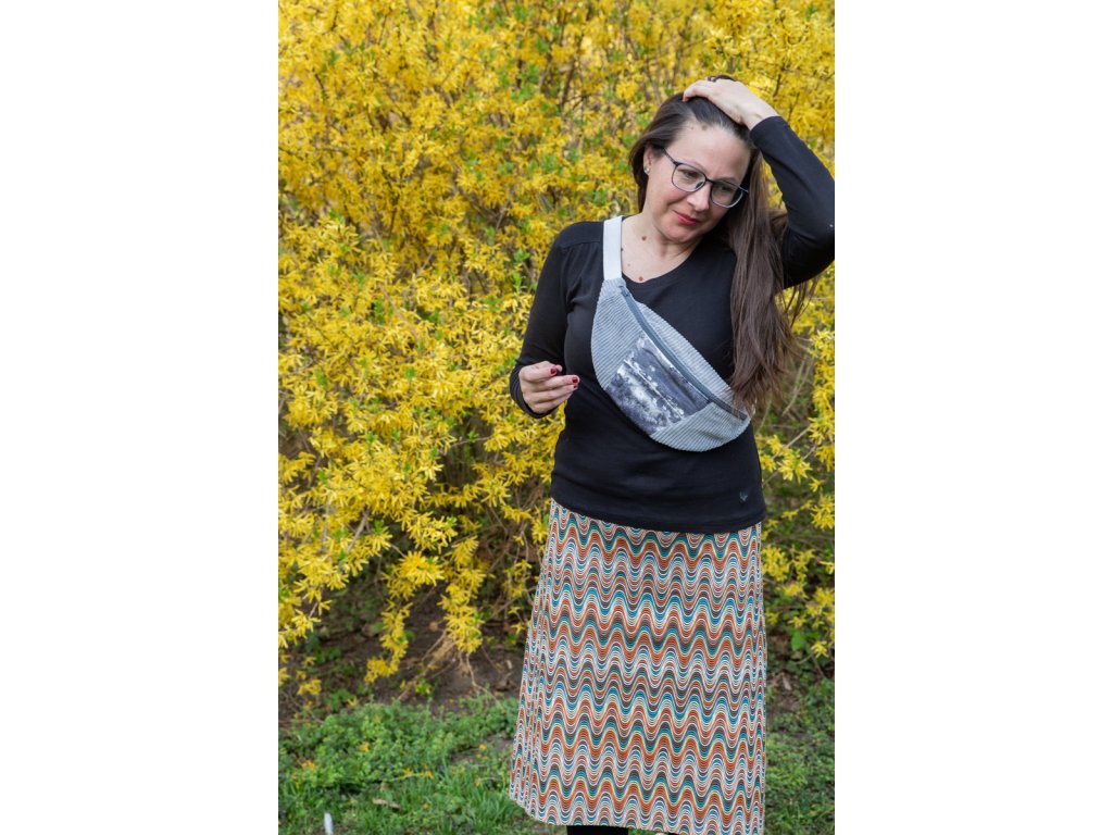 Crossbody přes tělo – na hrudi nebo na zádech, jak ti vyhovuje. Popruh lze prodloužit až na 93 cm, takže funguje i jako menší kabelka. V zimě, když máš na sobě haldu vrstev, si ho prostě prodloužíš.
